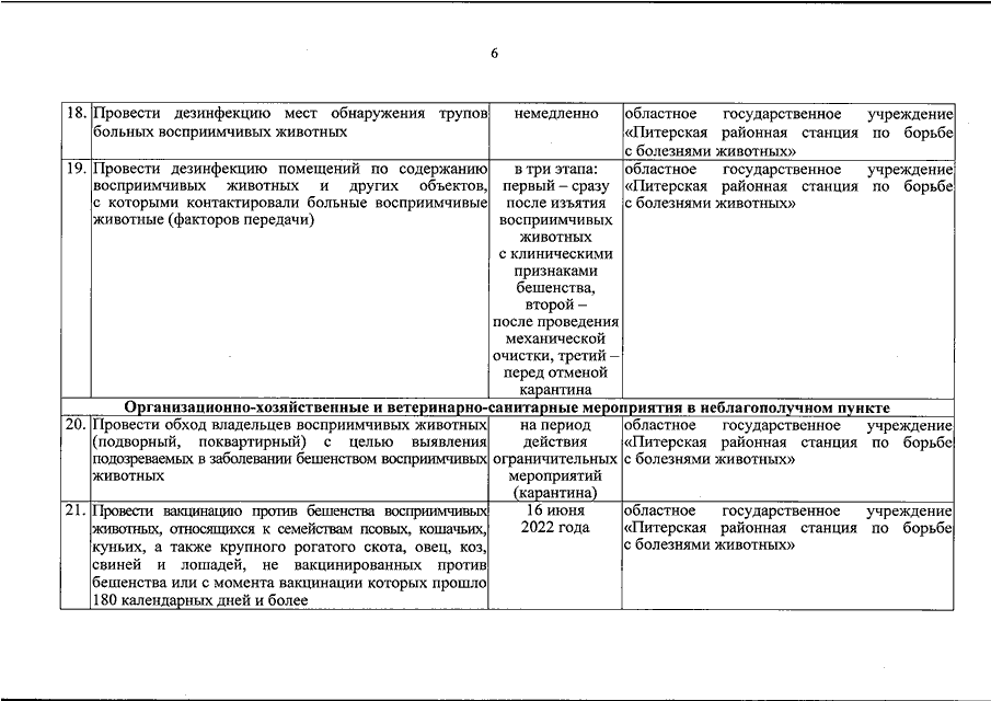 Постановление Губернатора Саратовской области от 27.05.2022 N 177 "Об установлении карантина по заболеванию бешенством животных на территории радиусом 500 м вокруг д. 2 "А", расположенного по ул. Колхозной с. Питерка Питерского муниципального образования Питерского муниципального района Саратовской области" (вместе с "Планом мероприятий по ликвидации эпизоотического очага бешенства в личном подсобном хозяйстве, расположенном по адресу: Саратовская область, Питерский муниципальный район, Питерское муниципальное образование, с. Питерка, ул. Колхозная, д. 2 "А", и установлению ограничений в эпизоотическом очаге и неблагополучном пункте")