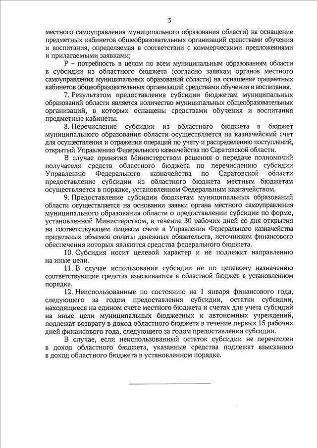 Постановление Правительства Саратовской области от 28.03.2025 N 268-П "О порядке предоставления и распределения из областного бюджета субсидии бюджетам муниципальных районов, муниципальных округов и городских округов области на оснащение предметных кабинетов общеобразовательных организаций оборудованием, средствами обучения и воспитания" (вместе с "Положением о порядке предоставления и распределения из областного бюджета субсидии бюджетам муниципальных районов, муниципальных округов и городских округов области на оснащение предметных кабинетов общеобразовательных организаций оборудованием, средствами обучения и воспитания")