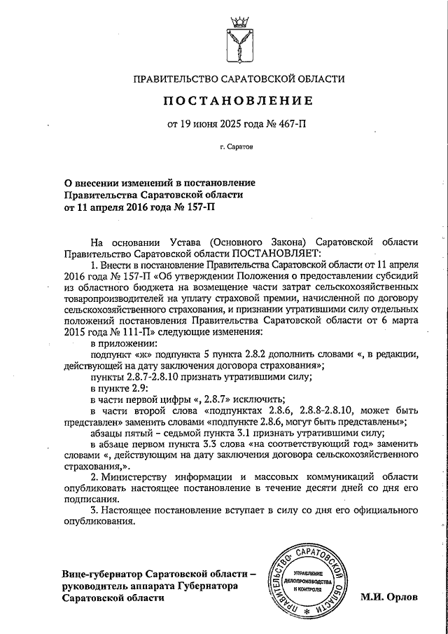 Постановление Правительства Саратовской области от 19.06.2025 N 467-П "О внесении изменений в постановление Правительства Саратовской области от 11 апреля 2016 года N 157-П"