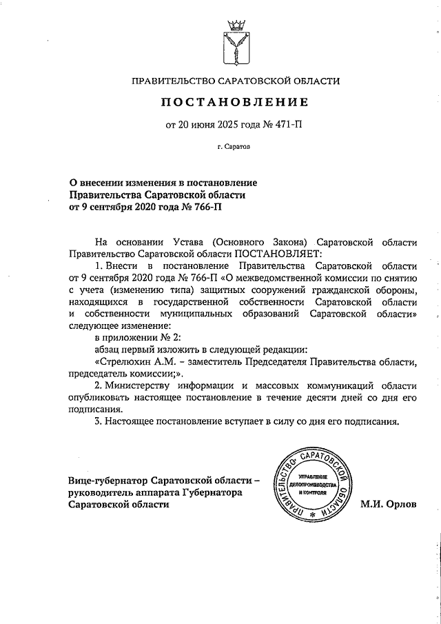 Постановление Правительства Саратовской области от 20.06.2025 N 471-П "О внесении изменения в постановление Правительства Саратовской области от 9 сентября 2020 года N 766-П"