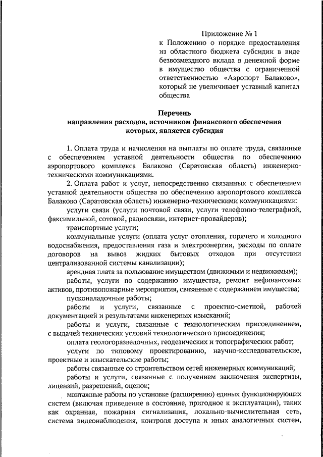 Постановление Правительства Саратовской области от 17.07.2025 N 558-П "Об утверждении Положения о порядке предоставления из областного бюджета субсидии в виде безвозмездного вклада в денежной форме в имущество общества с ограниченной ответственностью "Аэропорт Балаково", который не увеличивает уставный капитал общества"