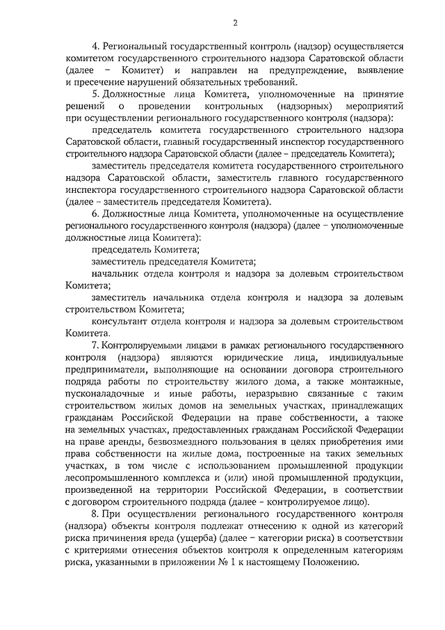 Постановление Правительства Саратовской области от 23.07.2025 N 570-П "Об утверждении Положения об осуществлении регионального государственного контроля (надзора) за соблюдением юридическими лицами, индивидуальными предпринимателями, подрядчиками требований к порядку и срокам размещения в единой информационной системе жилищного строительства информации и сведений, предусмотренных частями 2 и 4 статьи 4 федерального закона "О строительстве жилых домов по договорам строительного подряда с использованием счетов эскроу", необходимых для строительства жилых домов по договорам строительного подряда, денежные средства в счет уплаты цены которого размещаются заказчиками на счетах эскроу, на территории Саратовской области"