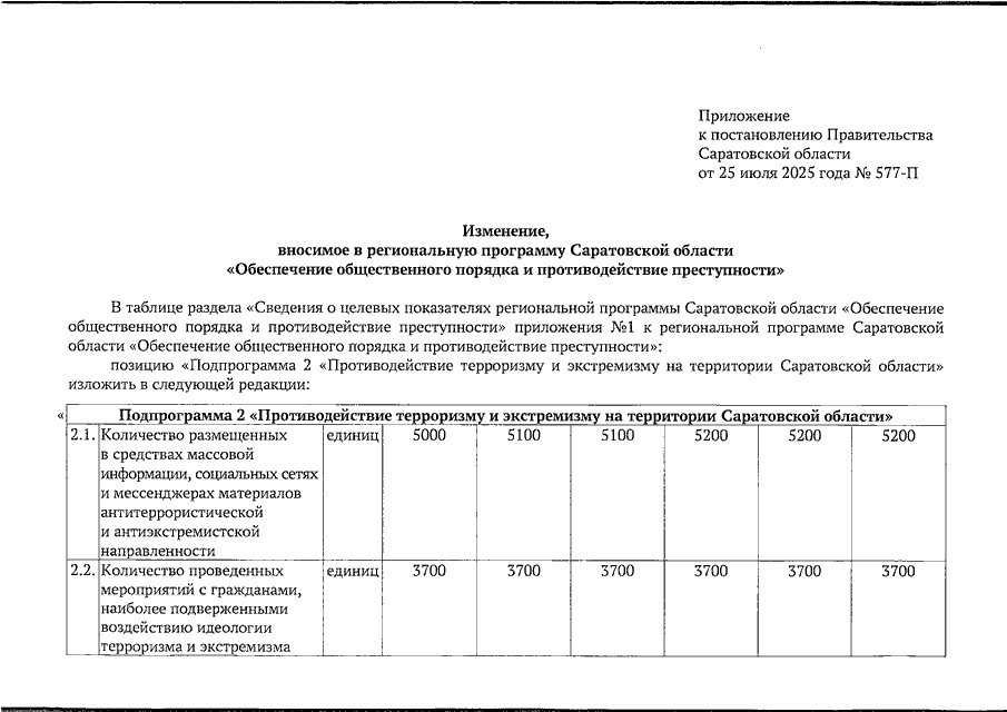Постановление Правительства Саратовской области от 25.07.2025 N 577-П "О внесении изменения в региональную программу Саратовской области "Обеспечение общественного порядка и противодействие преступности"