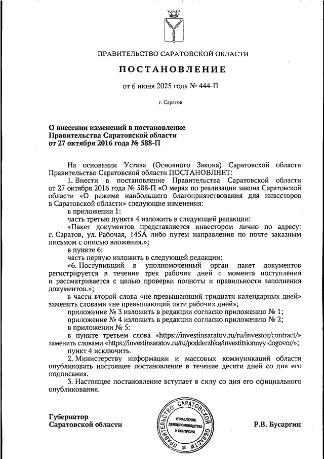 Постановление Правительства Саратовской области от 06.06.2025 N 444-П "О внесении изменений в постановление Правительства Саратовской области от 27 октября 2016 года N 588-П"