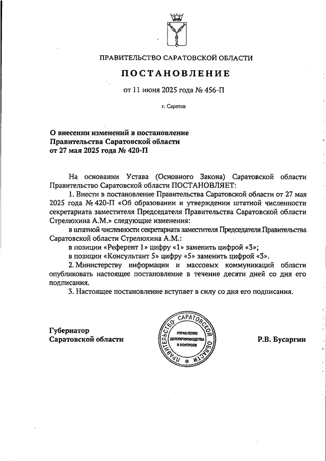 Постановление Правительства Саратовской области от 11.06.2025 N 456-П "О внесении изменений в постановление Правительства Саратовской области от 27 мая 2025 года N 420-П"