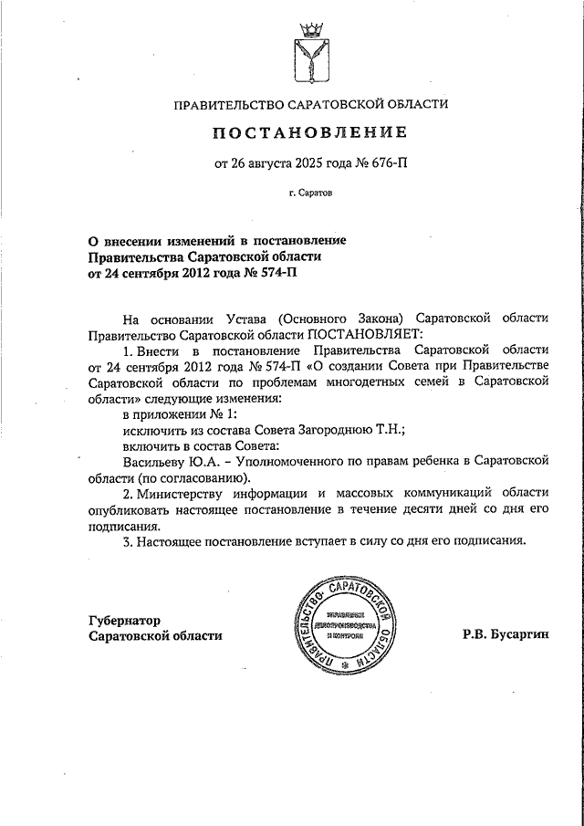Постановление Правительства Саратовской области от 26.08.2025 N 676-П "О внесении изменений в постановление Правительства Саратовской области от 24 сентября 2012 года N 574-П"