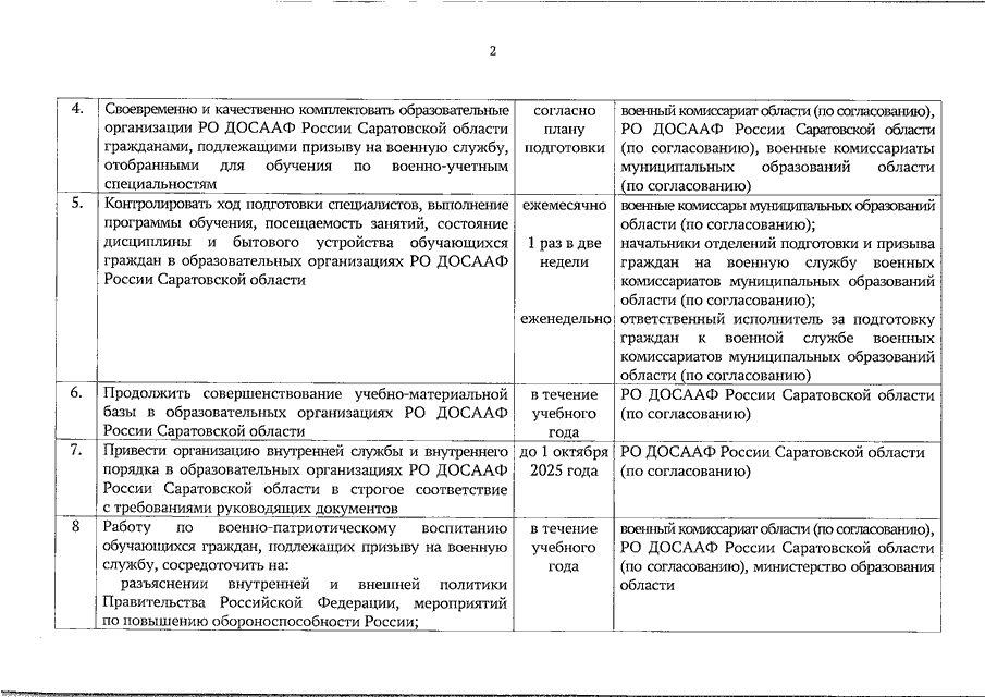 Постановление Правительства Саратовской области от 03.09.2025 N 697-П "О подготовке граждан Российской Федерации, подлежащих призыву на военную службу, по военно-учетным специальностям солдат, матросов, сержантов и старшин в общественно-государственных и профессиональных образовательных организациях в 2025 - 2026 учебном году" (вместе с "Планом основных мероприятий по подготовке специалистов для Вооруженных Сил Российской Федерации в 2025 - 2026 учебном году")