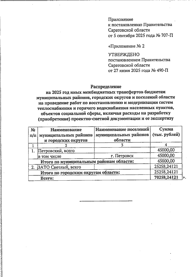 Постановление Правительства Саратовской области от 05.09.2025 N 707-П "О внесении изменений в постановление Правительства Саратовской области от 27 июня 2025 года N 490-П"