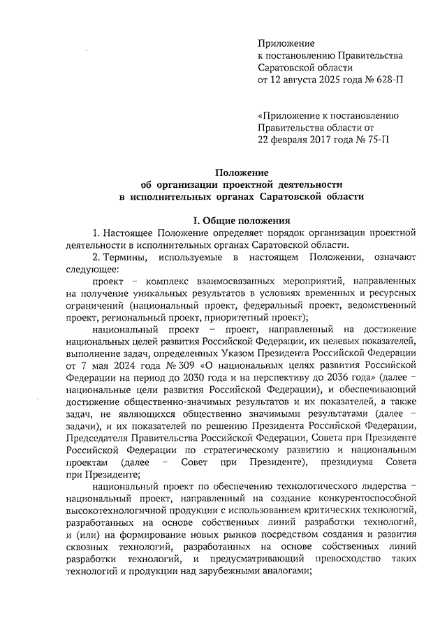Постановление Правительства Саратовской области от 12.08.2025 N 628-П "О внесении изменения в постановление Правительства Саратовской области от 22 февраля 2017 года N 75-П"