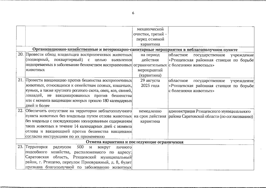 Постановление Губернатора Саратовской области от 21.08.2025 N 209 "Об установлении карантина по заболеванию бешенством животных на территории радиусом 500 м вокруг личного подсобного хозяйства, расположенного по адресу: Саратовская область, Ртищевский муниципальный район, г. Ртищево, переулок Приовражный, д. 8"