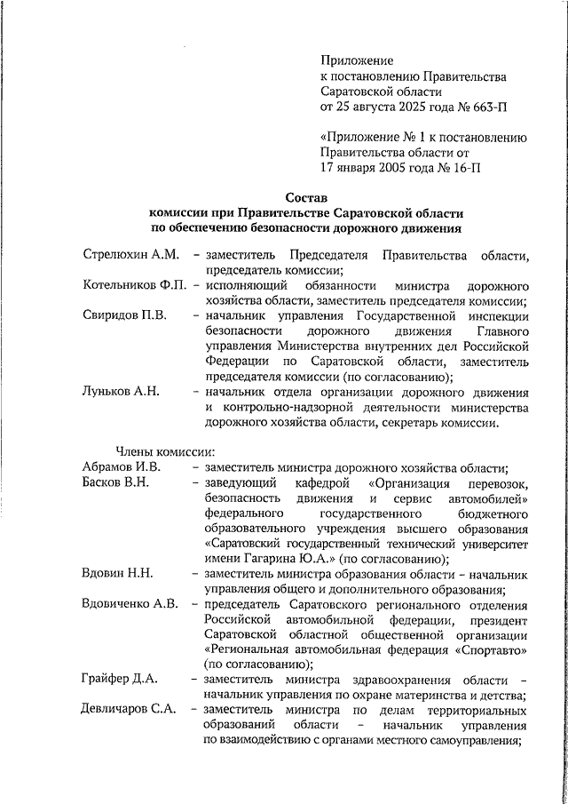 Постановление Правительства Саратовской области от 25.08.2025 N 663-П "О внесении изменений в постановление Правительства Саратовской области от 17 января 2005 года N 16-П"