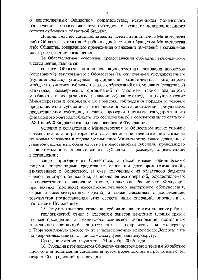 Постановление Правительства Саратовской области от 24.07.2025 N 573-П "Об утверждении Положения о порядке предоставления из областного бюджета субсидии акционерному обществу "Санаторий-курорт им. В.И. Чапаева" в виде безвозмездного вклада в денежной форме в имущество хозяйственного общества, который не увеличивает уставный капитал общества, на финансовое обеспечение затрат, связанных с проведением геологоразведочных работ по объекту "Разведка (переоценка запасов) лечебных иловых грязей на Чапаевских грязевых озерах и грязевом месторождении в плесах р. Большой Кушум в Ершовском муниципальном районе Саратовской области"