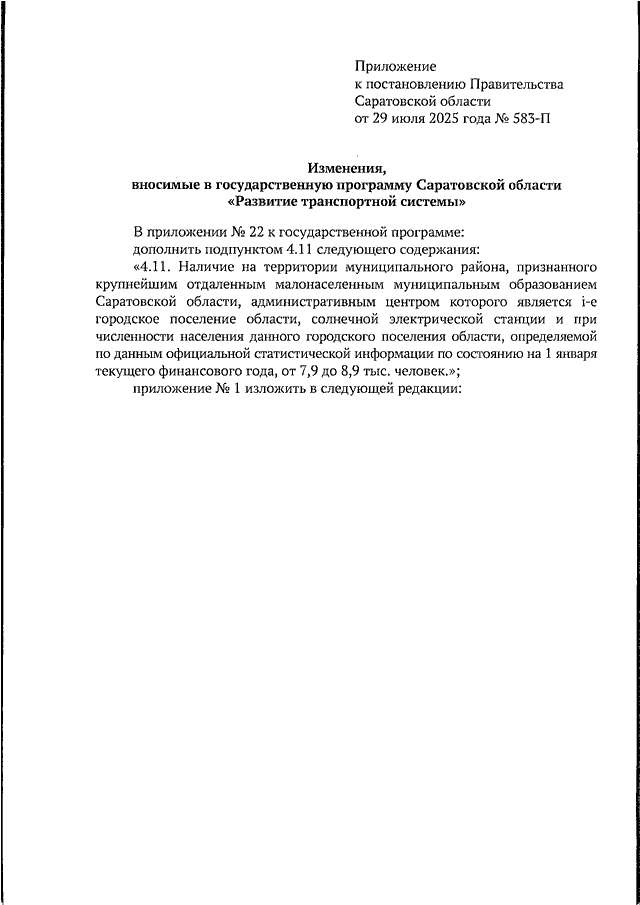 Постановление Правительства Саратовской области от 29.07.2025 N 583-П "О внесении изменений в государственную программу Саратовской области "Развитие транспортной системы"