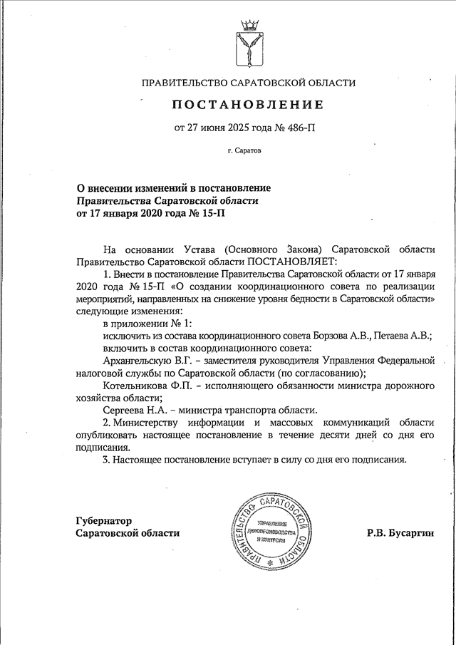 Постановление Правительства Саратовской области от 27.06.2025 N 486-П "О внесении изменений в постановление Правительства Саратовской области от 17 января 2020 года N 15-П"