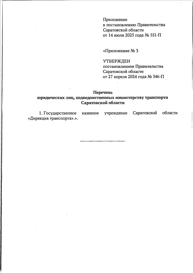 Постановление Правительства Саратовской области от 14.07.2025 N 551-П "О внесении изменений в постановление Правительства Саратовской области от 27 апреля 2024 года N 346-П"
