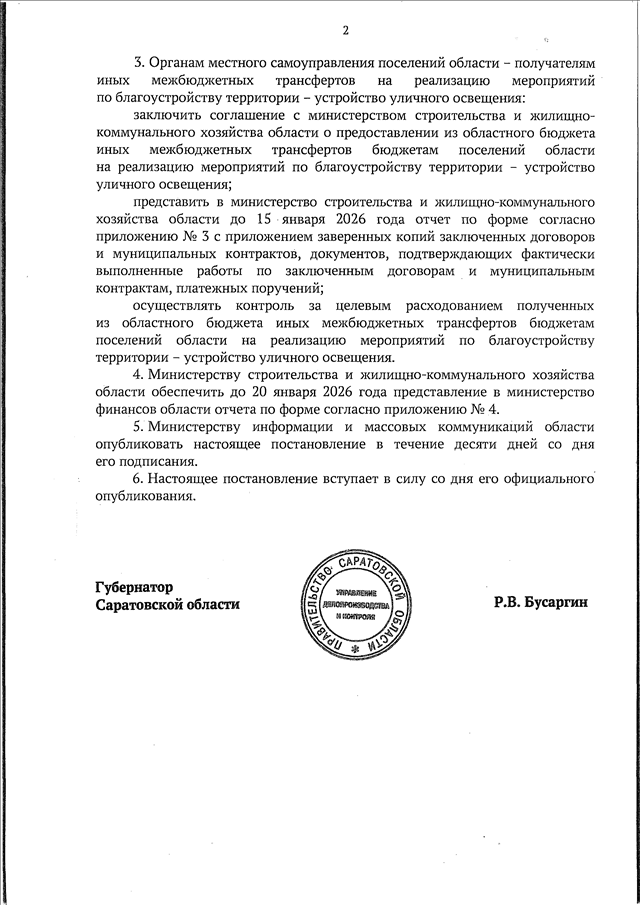 Постановление Правительства Саратовской области от 06.08.2025 N 616-П "О выделении средств из резервного фонда Правительства Саратовской области, методике распределения и порядке предоставления из областного бюджета иных межбюджетных трансфертов бюджетам поселений области на реализацию мероприятий по благоустройству территории - устройство уличного освещения" (вместе с "Положением о методике распределения и порядке предоставления из областного бюджета иных межбюджетных трансфертов бюджетам поселений области на реализацию мероприятий по благоустройству территории - устройство уличного освещения")