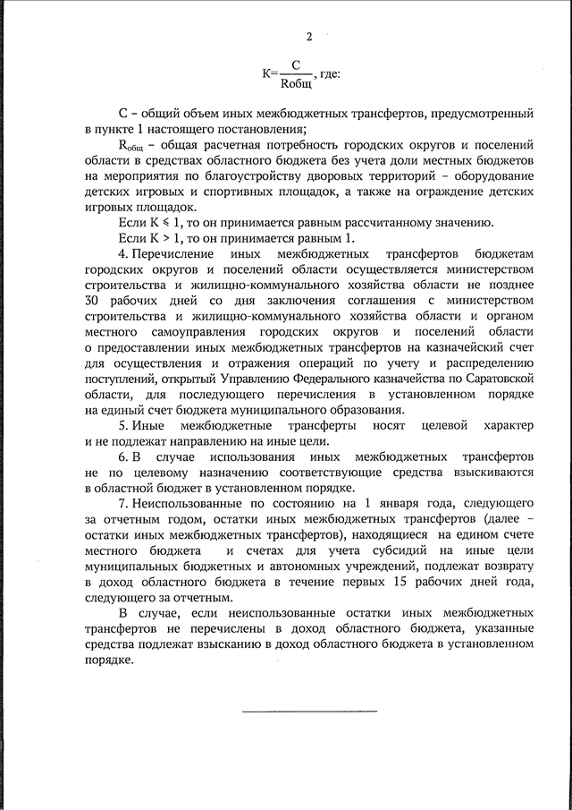 Постановление Правительства Саратовской области от 06.08.2025 N 615-П "О выделении средств из резервного фонда Правительства Саратовской области, методике распределения и порядке предоставления из областного бюджета иных межбюджетных трансфертов бюджетам городских округов и поселений области на мероприятия по благоустройству дворовых территорий - оборудование детских игровых и спортивных площадок, а также на ограждение детских игровых площадок" (вместе с "Положением о методике распределения и порядке предоставления из областного бюджета иных межбюджетных трансфертов бюджетам городских округов и поселений области на мероприятия по благоустройству дворовых территорий - оборудование детских игровых и спортивных площадок, а также на ограждение детских игровых площадок")