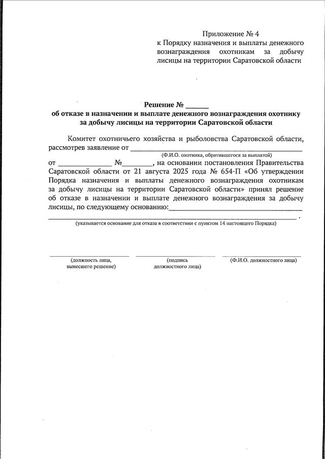 Постановление Правительства Саратовской области от 21.08.2025 N 654-П "Об утверждении Порядка назначения и выплаты денежного вознаграждения охотникам за добычу лисицы на территории Саратовской области"