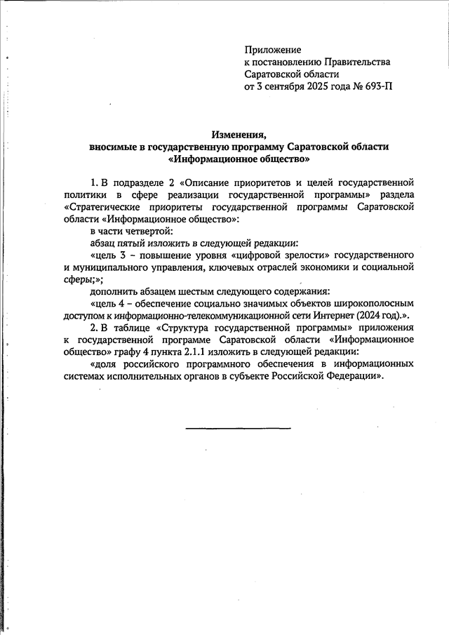 Постановление Правительства Саратовской области от 03.09.2025 N 693-П "О внесении изменений в государственную программу Саратовской области "Информационное общество"