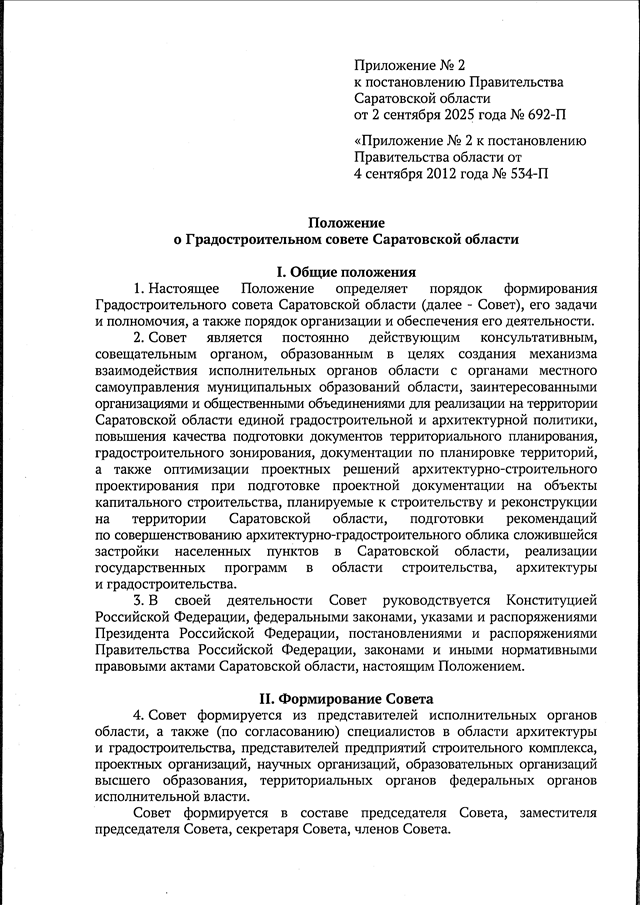 Постановление Правительства Саратовской области от 02.09.2025 N 692-П "О внесении изменений в постановление Правительства Саратовской области от 4 сентября 2012 года N 534-П"