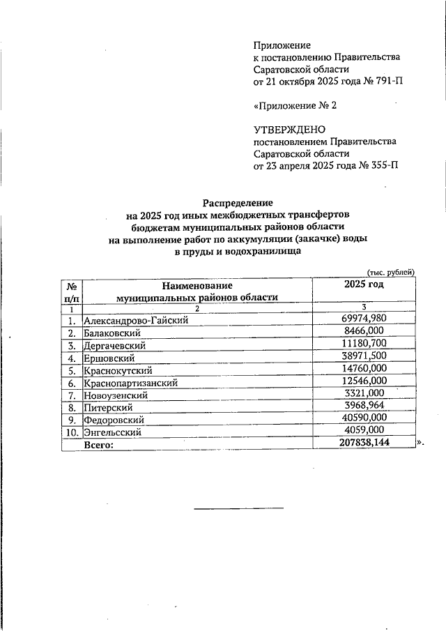 Постановление Правительства Саратовской области от 21.10.2025 N 791-П "О внесении изменений в постановление Правительства Саратовской области от 23 апреля 2025 года N 355-П"