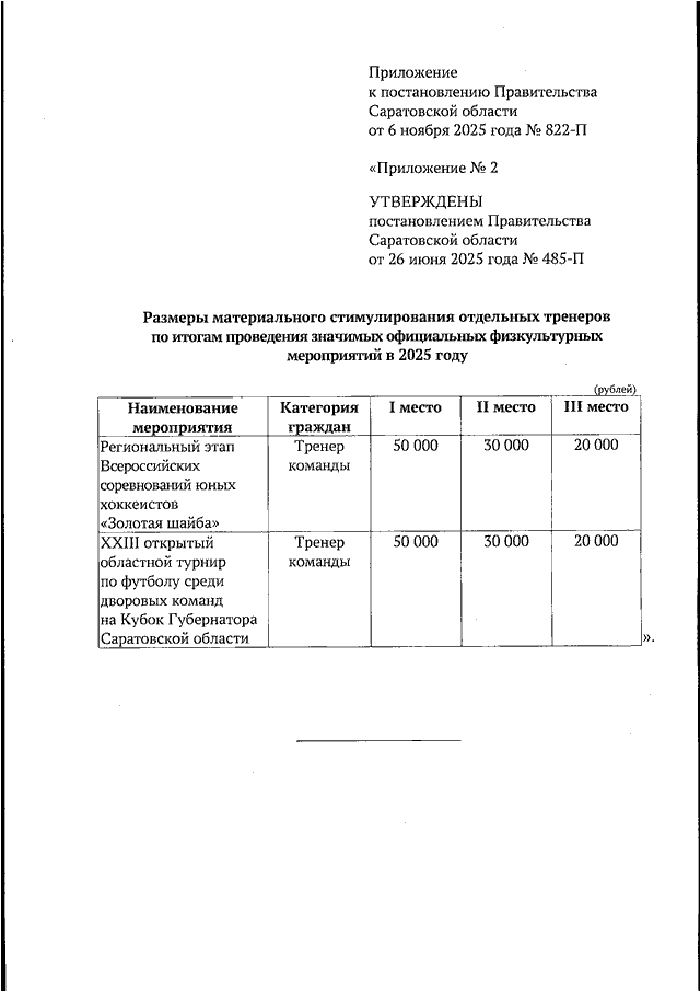 Постановление Правительства Саратовской области от 06.11.2025 N 822-П "О внесении изменений в постановление Правительства Саратовской области от 26 июня 2025 года N 485-П"