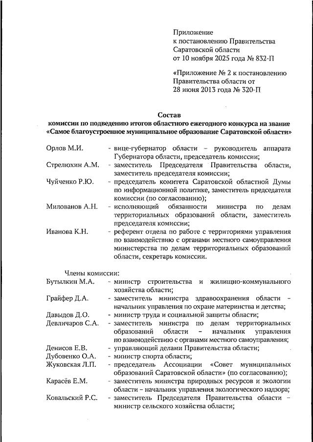 Постановление Правительства Саратовской области от 10.11.2025 N 832-П "О внесении изменений в постановление Правительства Саратовской области от 28 июня 2013 года N 320-П"