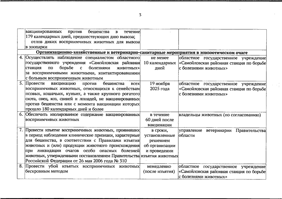 Постановление Губернатора Саратовской области от 18.11.2025 N 286 "Об установлении карантина по заболеванию бешенством животных на территории радиусом 500 м вокруг личного подсобного хозяйства, расположенного по адресу: Саратовская область, Самойловский муниципальный район, Святославское муниципальное образование, село Святославка, ул. Рабочая, д. 12"