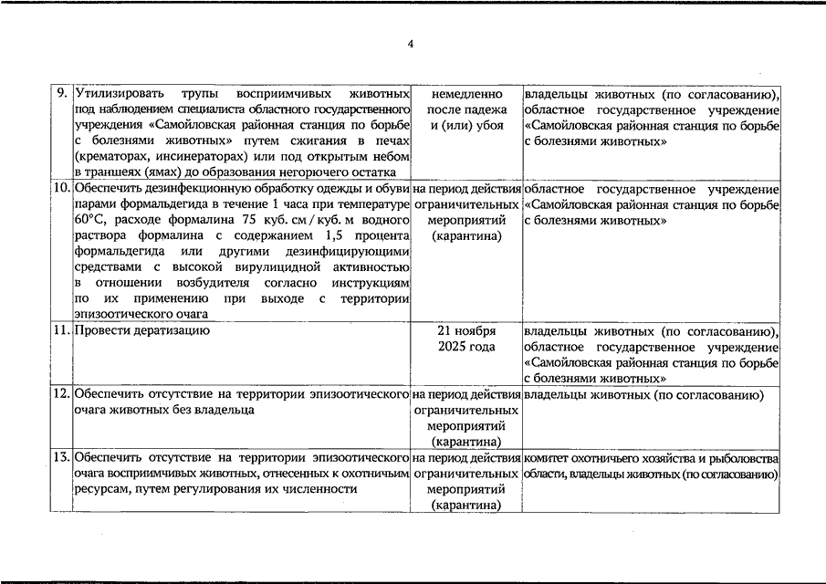 Постановление Губернатора Саратовской области от 18.11.2025 N 286 "Об установлении карантина по заболеванию бешенством животных на территории радиусом 500 м вокруг личного подсобного хозяйства, расположенного по адресу: Саратовская область, Самойловский муниципальный район, Святославское муниципальное образование, село Святославка, ул. Рабочая, д. 12"