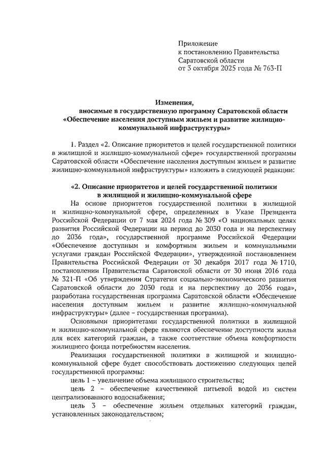 Постановление Правительства Саратовской области от 03.10.2025 N 763-П "О внесении изменений в государственную программу Саратовской области "Обеспечение населения доступным жильем и развитие жилищно-коммунальной инфраструктуры"