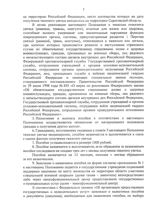 Постановление Правительства Саратовской области от 03.10.2025 N 767-П "Об утверждении Положения о порядке назначения и выплаты ежемесячного пособия отдельным категориям граждан, получивших тяжелое увечье (ранение, травму, контузию) в связи с проведением специальной военной операции"