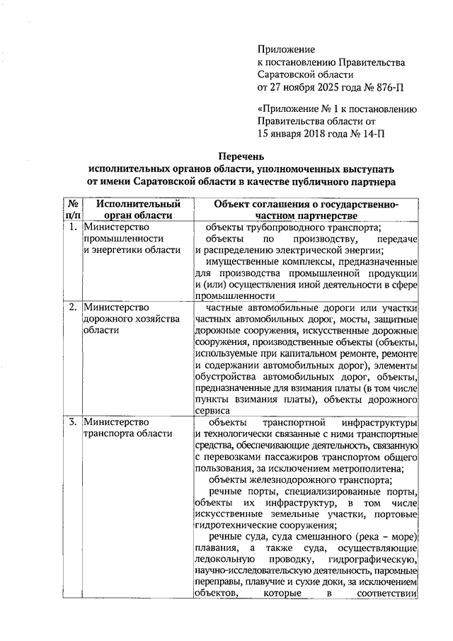 Постановление Правительства Саратовской области от 27.11.2025 N 876-П "О внесении изменений в постановление Правительства Саратовской области от 15 января 2018 года N 14-П"