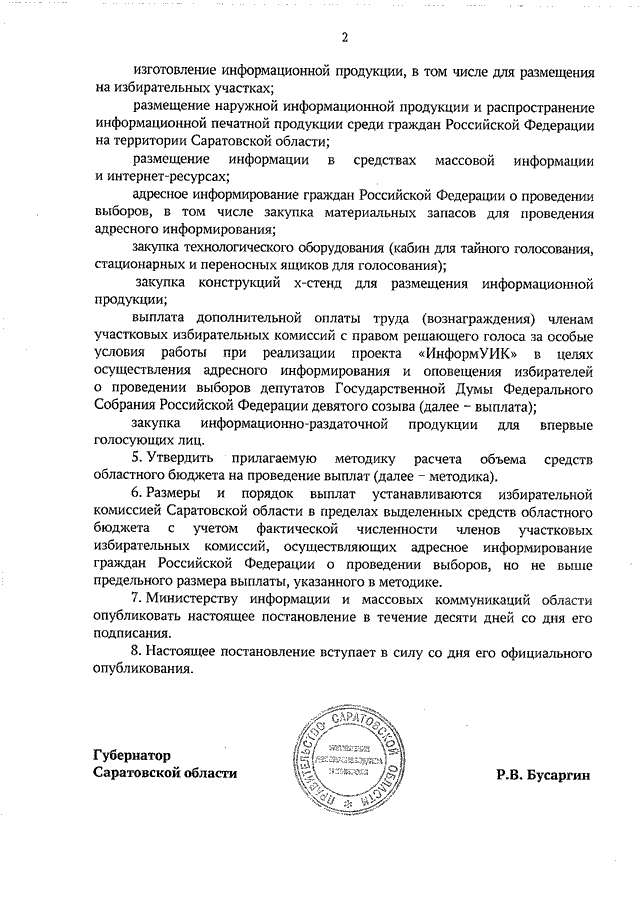 Постановление Правительства Саратовской области от 03.12.2025 N 903-П "О мероприятиях по оказанию содействия избирательным комиссиям в подготовке и проведении выборов депутатов Государственной Думы Федерального Собрания Российской Федерации девятого созыва на территории Саратовской области" (вместе с "Методикой расчета объема средств областного бюджета на проведение выплаты дополнительной оплаты труда (вознаграждения) членам участковых избирательных комиссий с правом решающего голоса за особые условия работы при реализации проекта "ИнформУИК" в целях осуществления адресного информирования и оповещения избирателей о проведении выборов депутатов Государственной Думы Федерального Собрания Российской Федерации девятого созыва")
