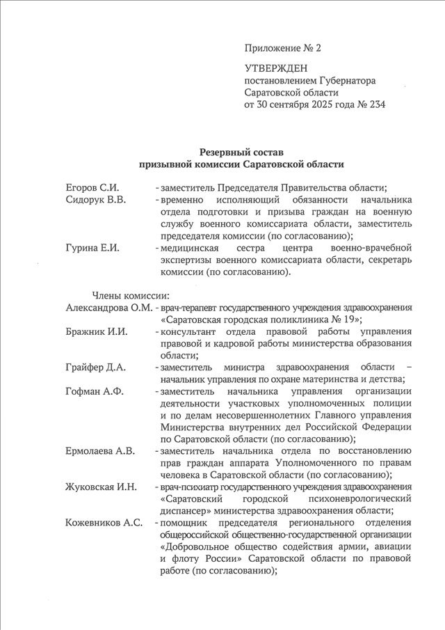 Постановление Губернатора Саратовской области от 30.09.2025 N 234 "О призыве в октябре - декабре 2025 года граждан Российской Федерации на военную службу"