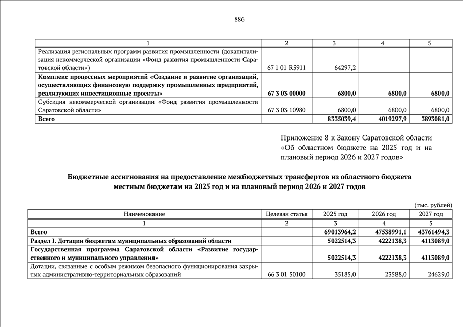 Закон Саратовской области от 29.09.2025 N 69-ЗСО "О внесении изменений в Закон Саратовской области "Об областном бюджете на 2025 год и на плановый период 2026 и 2027 годов" (принят Саратовской областной Думой 24.09.2025)
