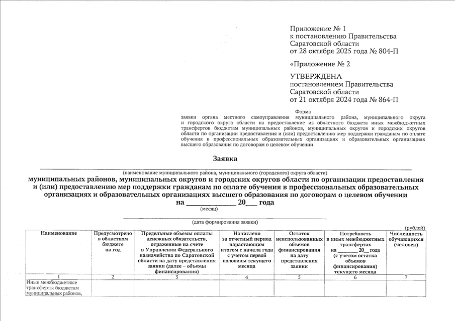 Постановление Правительства Саратовской области от 28.10.2025 N 804-П "О внесении изменений в постановление Правительства Саратовской области от 21 октября 2024 года N 864-П"