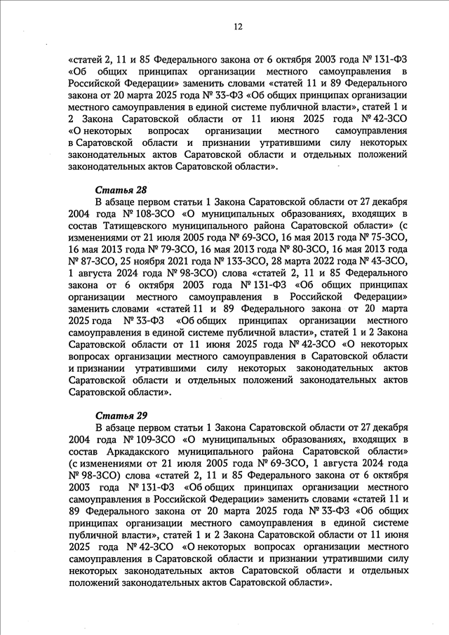 Закон Саратовской области от 29.10.2025 N 74-ЗСО "О внесении изменений в некоторые законодательные акты Саратовской области" (принят Саратовской областной Думой 22.10.2025)