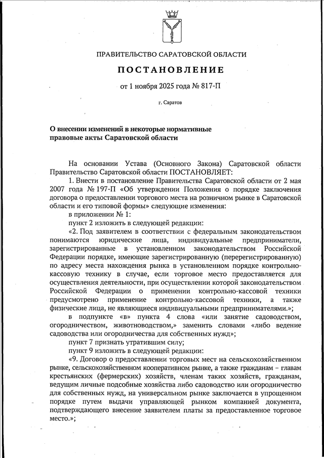Постановление Правительства Саратовской области от 01.11.2025 N 817-П "О внесении изменений в некоторые нормативные правовые акты Саратовской области"