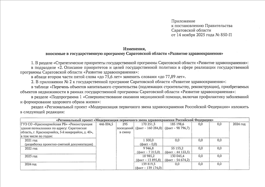 Постановление Правительства Саратовской области от 14.11.2025 N 850-П "О внесении изменений в государственную программу Саратовской области "Развитие здравоохранения"