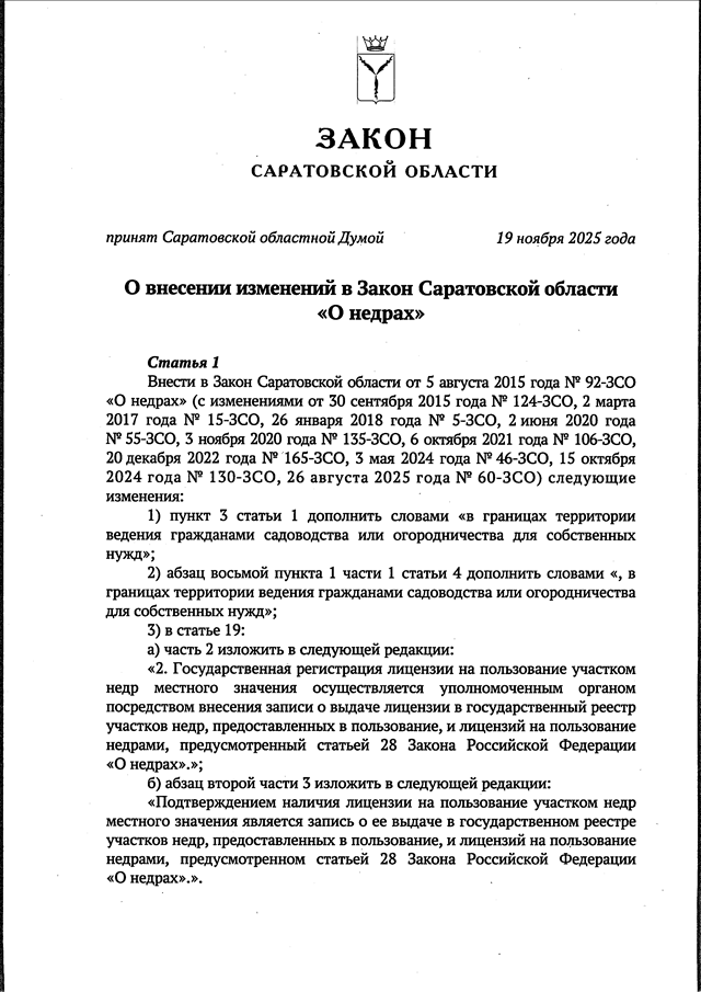 Закон Саратовской области от 27.11.2025 N 90-ЗСО "О внесении изменений в Закон Саратовской области "О недрах" (принят Саратовской областной Думой 19.11.2025)