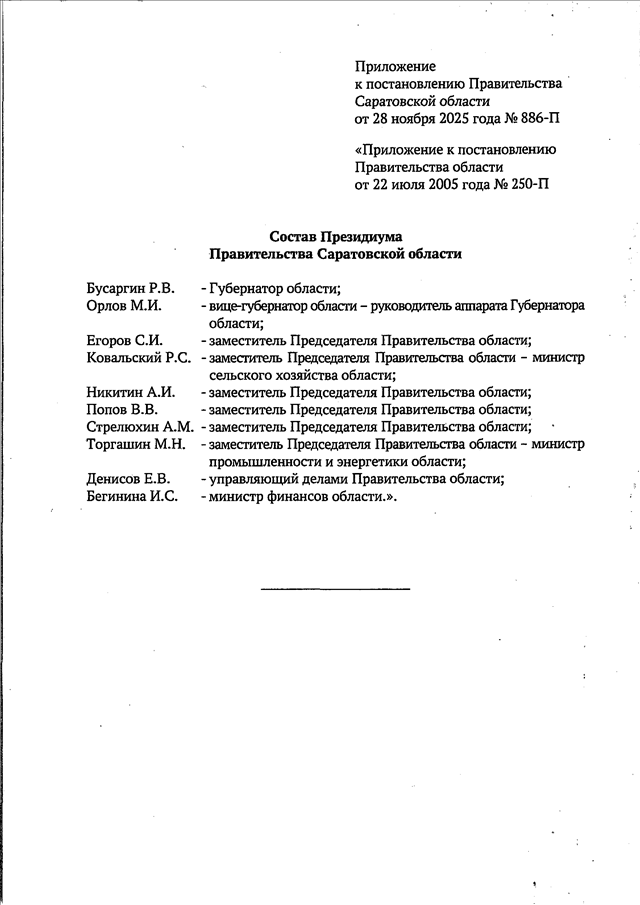 Постановление Правительства Саратовской области от 28.11.2025 N 886-П "О внесении изменения в постановление Правительства Саратовской области от 22 июля 2005 года N 250-П"