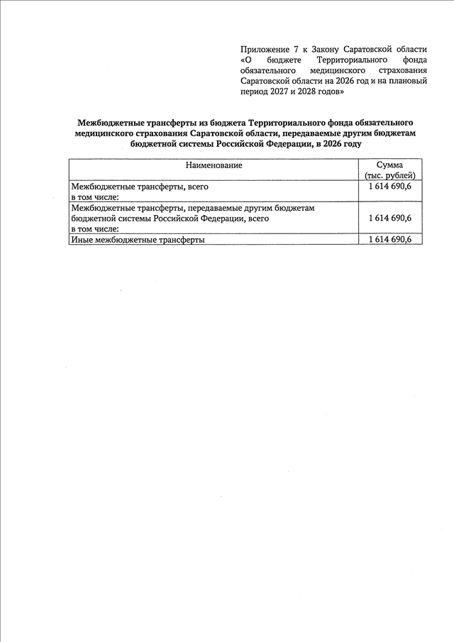 Закон Саратовской области от 10.12.2025 N 97-ЗСО "О бюджете территориального фонда обязательного медицинского страхования Саратовской области на 2026 год и на плановый период 2027 и 2028 годов" (принят Саратовской областной Думой 03.12.2025)