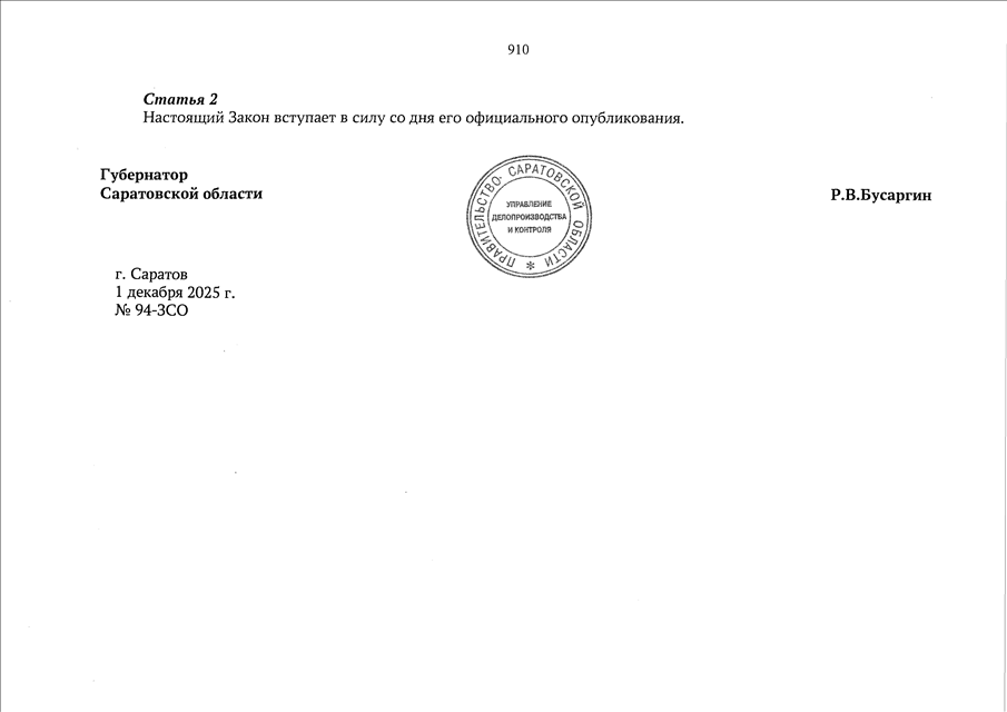 Закон Саратовской области от 01.12.2025 N 94-ЗСО "О внесении изменений в Закон Саратовской области "Об областном бюджете на 2025 год и на плановый период 2026 и 2027 годов" (принят Саратовской областной Думой 27.11.2025)