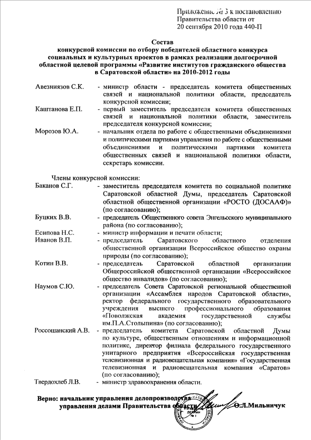 Постановление Правительства Саратовской области от 20.09.2010 N 440-П "Вопросы реализации долгосрочной областной целевой программы "Развитие институтов гражданского общества в Саратовской области" на 2010 - 2012 годы"