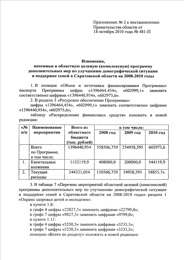 Постановление Правительства Саратовской области от 18.10.2010 N 481-П "О внесении изменений в некоторые областные целевые программы"