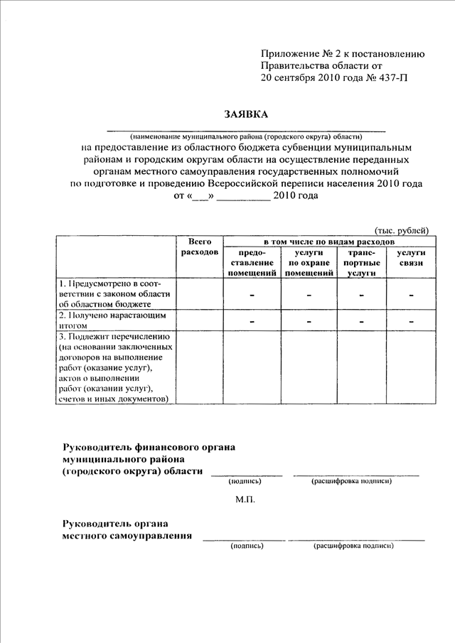 Постановление Правительства Саратовской области от 20.09.2010 N 437-П "О порядке предоставления из областного бюджета субвенции муниципальным районам и городским округам области на осуществление переданных органам местного самоуправления государственных полномочий по подготовке и проведению Всероссийской переписи населения 2010 года"