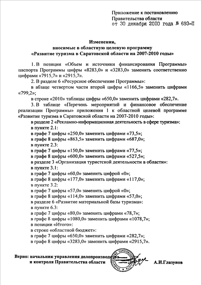 Постановление Правительства Саратовской области от 30.12.2010 N 693-П "О внесении изменений в областную целевую программу "Развитие туризма в Саратовской области на 2007 - 2010 годы"