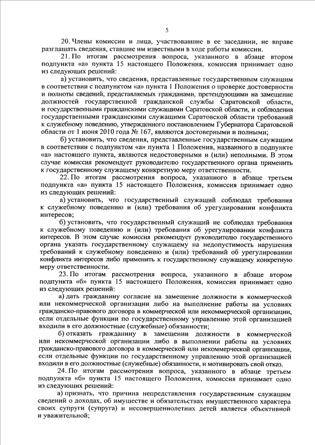 Постановление Губернатора Саратовской области от 19.08.2010 N 206 "Об утверждении Положения о комиссиях по соблюдению требований к служебному поведению государственных гражданских служащих Саратовской области и урегулированию конфликта интересов"