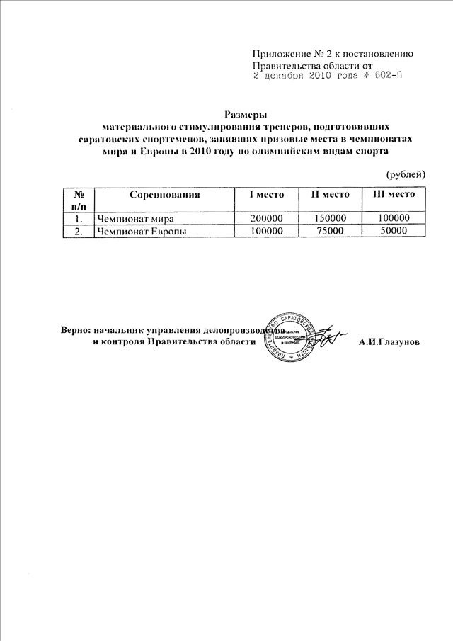 Постановление Правительства Саратовской области от 02.12.2010 N 602-П "Вопросы материального стимулирования саратовских спортсменов и их тренеров за призовые места в чемпионатах мира и Европы по олимпийским видам спорта в 2010 году"