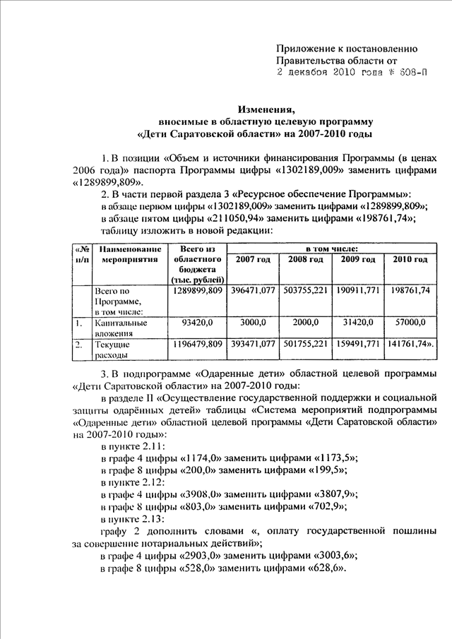 Постановление Правительства Саратовской области от 02.12.2010 N 608-П "О внесении изменений в областную целевую программу "Дети Саратовской области" на 2007 - 2010 годы"